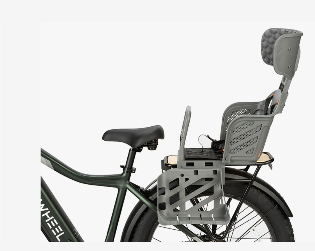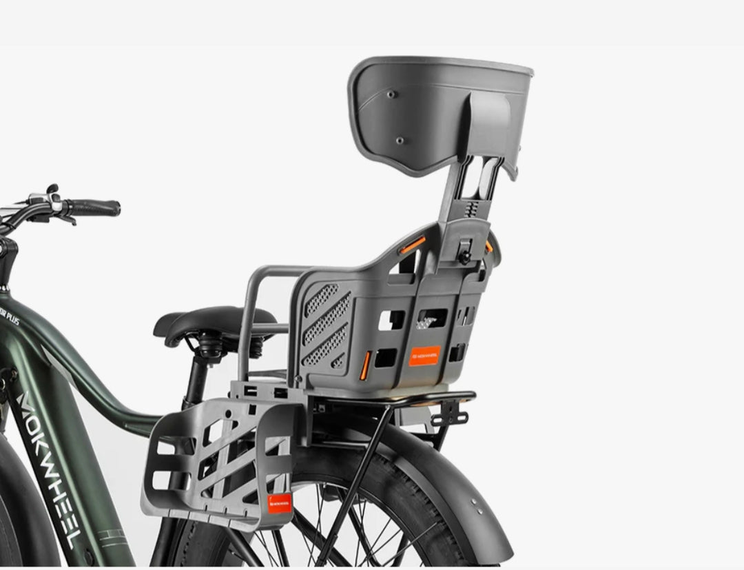 The Mokwheel bike child rear seat is a safe and secure way to transport children from 12 months to 7 years old, up to 40 lb.