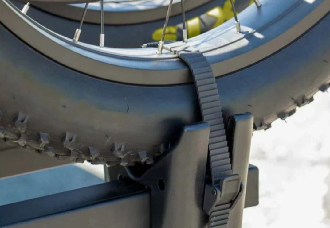 Now includes a red safety strap to help secure the bikes to the central post and to each other
